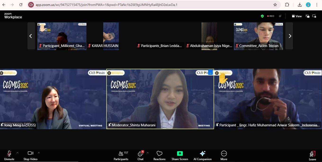 Around more than 200 students and young leaders from different institutions across the world participated in COSMOS 2026, with the theme โCollaborative Summer Mission on Sustainability,โ an international summer program organized by Universitas Brawijaya in Indonesia. The program included a series of interactive online sessions held from ๐๐๐ซ๐๐ก ๐๐-๐๐, ๐๐๐๐.