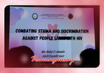 The microphone was then passed to 𝐌𝐬. 𝐂𝐡𝐞𝐬𝐭𝐞𝐫 𝐀𝐠𝐧𝐨𝐭𝐞, SSC President, who officially welcomed the participants and introduced the first resource speaker. The first lecture was delivered by 𝐌𝐬. 𝐑𝐮𝐛𝐲 𝐀𝐦𝐚𝐝𝐨, GAD Coordinator of PSU- Urdaneta City campus, who discussed combating stigma and discrimination against people living with HIV, addressing common myths and underscoring the importance of understanding beyond assumptions. Her discussion was followed by the awarding of a certificate and a token of appreciation.