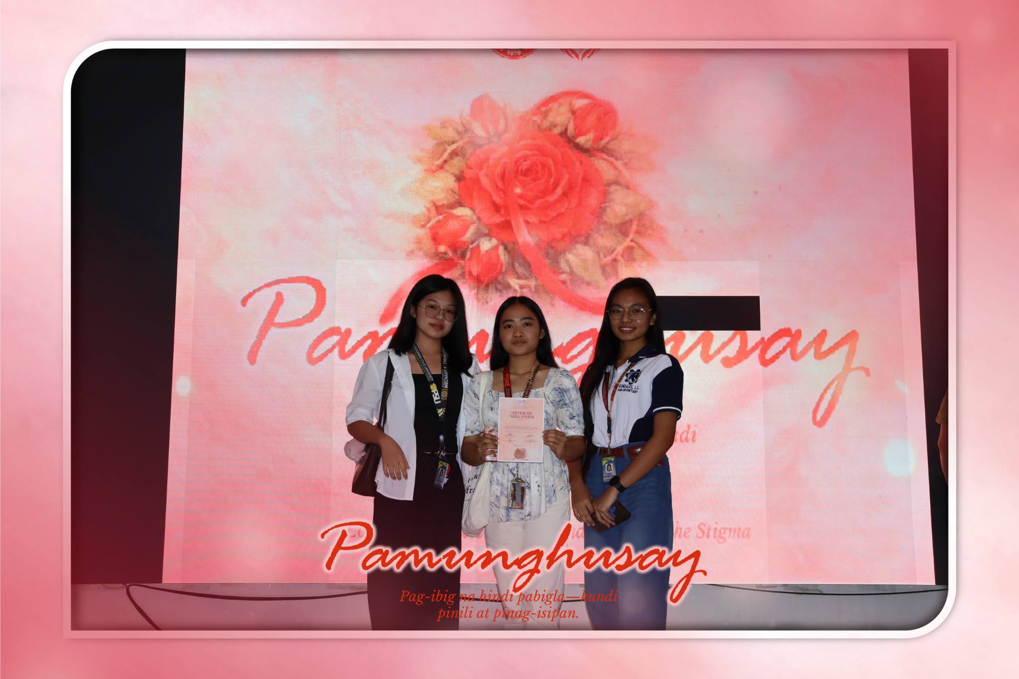 Finally, the program closed with a closing remark by 𝐌𝐫. 𝐌𝐢𝐤𝐞 𝐋𝐞𝐬𝐭𝐞𝐫 𝐕𝐞𝐧𝐞𝐧𝐜𝐢𝐚𝐧𝐨 𝐓𝐚𝐧𝐚𝐩, Vice President for Student Rights and Welfare of the SSC, highlighting the need to sustain the awareness created beyond the symposium. And that this conversation does not end here. “𝑃𝑎𝑡𝑢𝑙𝑜𝑦 𝑛𝑎𝑡𝑖𝑛𝑔 𝑝𝑖𝑝𝑖𝑙𝑖𝑖𝑛 𝑎𝑛𝑔 𝑝𝑎𝑔𝑖𝑔𝑖𝑛𝑔 𝑚𝑢𝑙𝑎𝑡—𝑎𝑠 𝑠𝑡𝑢𝑑𝑒𝑛𝑡𝑠 𝑡𝑎𝑘𝑒 𝑝𝑎𝑟𝑡 𝑖𝑛 𝑏𝑢𝑖𝑙𝑑𝑖𝑛𝑔 𝑎 𝑐𝑎𝑚𝑝𝑢𝑠 𝑟𝑜𝑜𝑡𝑒𝑑 𝑖𝑛 𝑎𝑤𝑎𝑟𝑒𝑛𝑒𝑠𝑠, 𝑟𝑒𝑠𝑝𝑒𝑐𝑡, 𝑎𝑛𝑑 𝑟𝑒𝑠𝑝𝑜𝑛𝑠𝑖𝑏𝑙𝑒 𝑙𝑜𝑣𝑒.” All the participating student leaders were then given their respective certificates, followed by a photo opportunity which symbolizes unity in breaking stigma.
