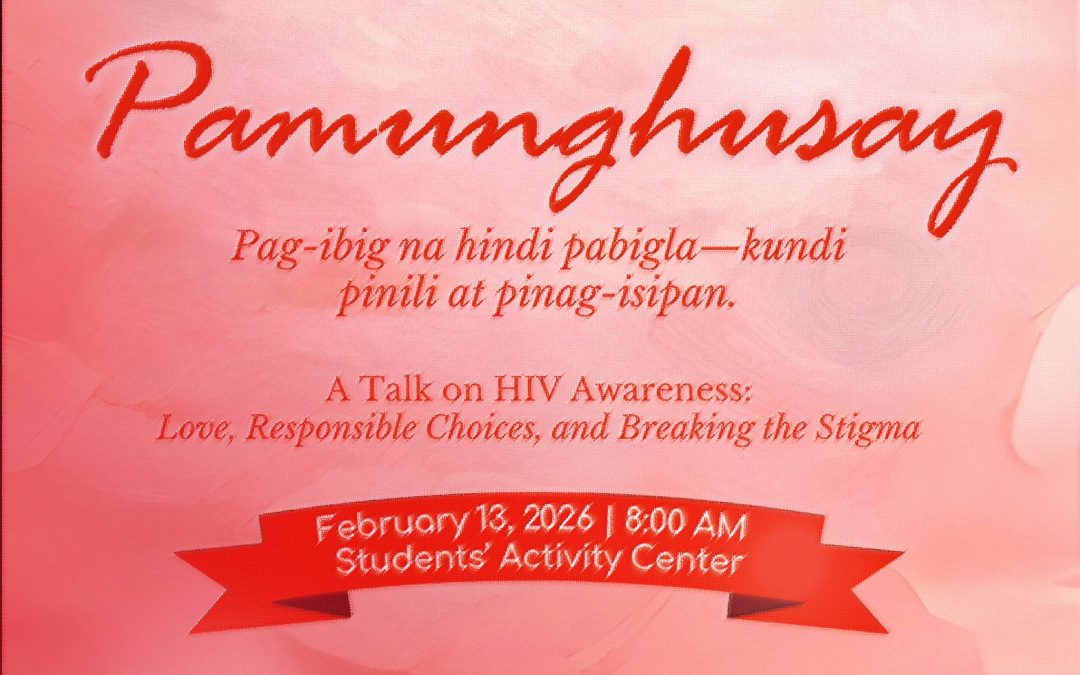 Student leaders from different organizations of Pangasinan State University–Urdaneta City Campus gathered on Valentine’s Day for 𝑷𝒂𝒎𝒖𝒏𝒈𝒉𝒖𝒔𝒂𝒚: 𝑷𝒂𝒈-𝒊𝒃𝒊𝒈 𝒏𝒂 𝒉𝒊𝒏𝒅𝒊 𝒎𝒊𝒏𝒂𝒅𝒂𝒍𝒊—𝒌𝒖𝒏𝒅𝒊 𝒑𝒊𝒏𝒊𝒍𝒊 𝒂𝒕 𝒑𝒊𝒏𝒂𝒈-𝒊𝒔𝒊𝒑𝒂𝒏, a symposium conducted as part of the campus Valentine’s Day Special Event. The activity brought together student leaders and advocates in a meaningful discussion aimed at strengthening 𝗛𝗜𝗩 𝗮𝘄𝗮𝗿𝗲𝗻𝗲𝘀𝘀, promoting informed choices, and breaking the stigma surrounding the condition through education and open dialogue.