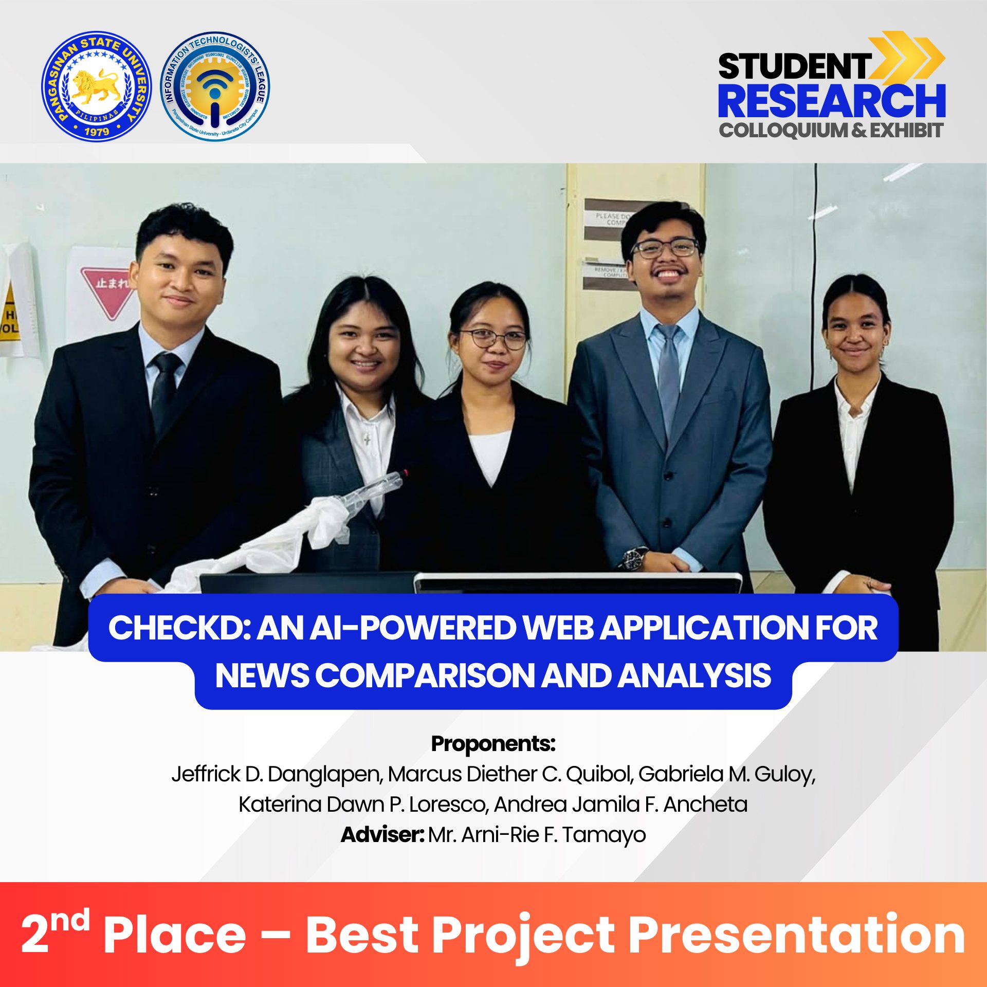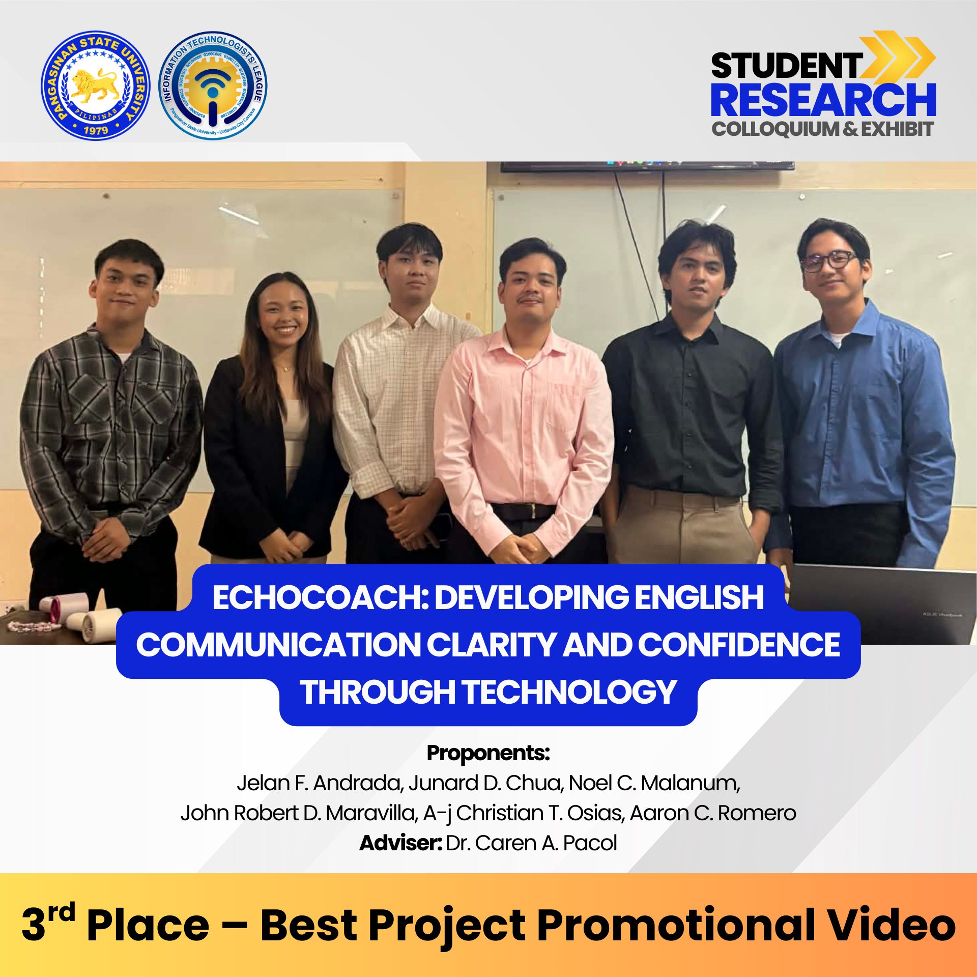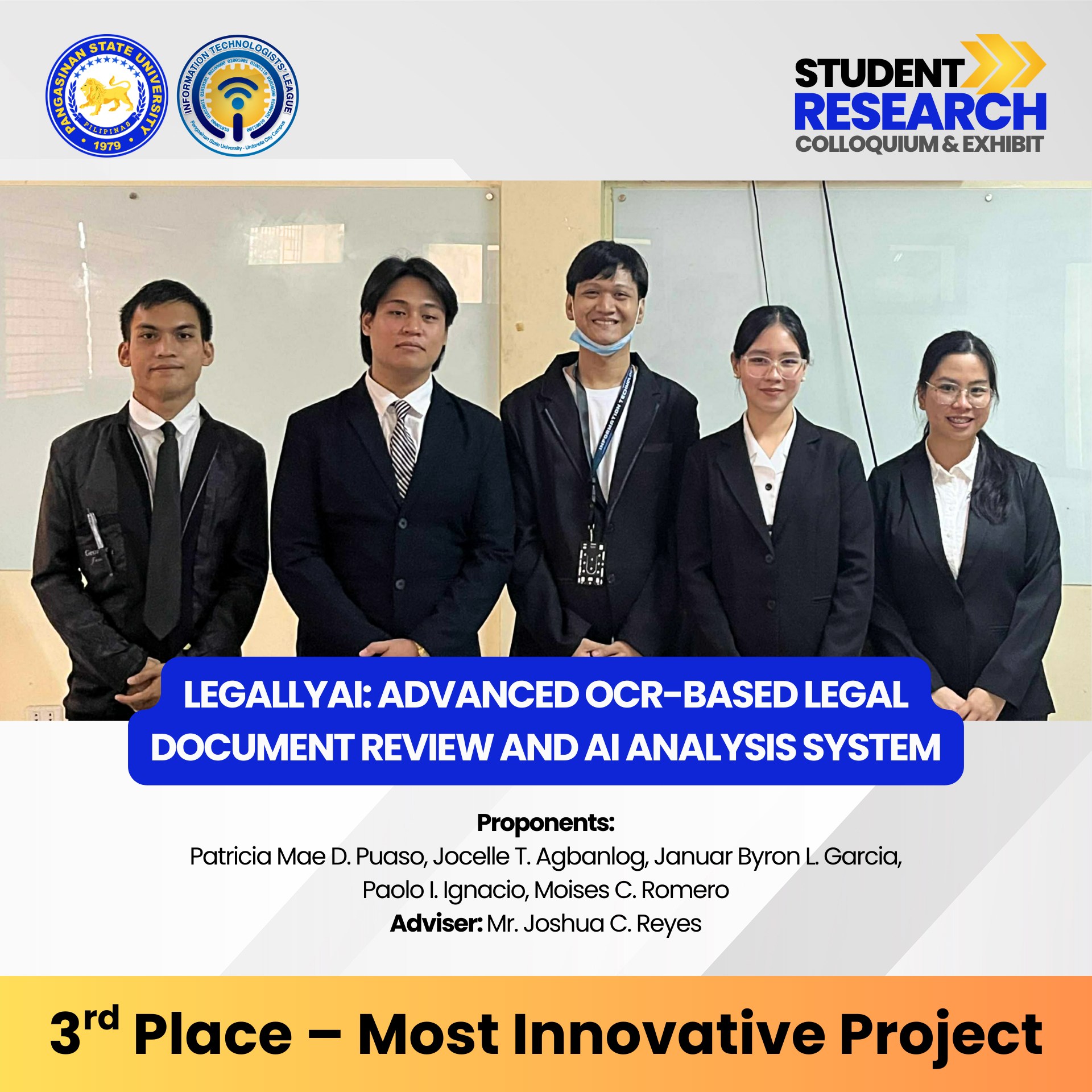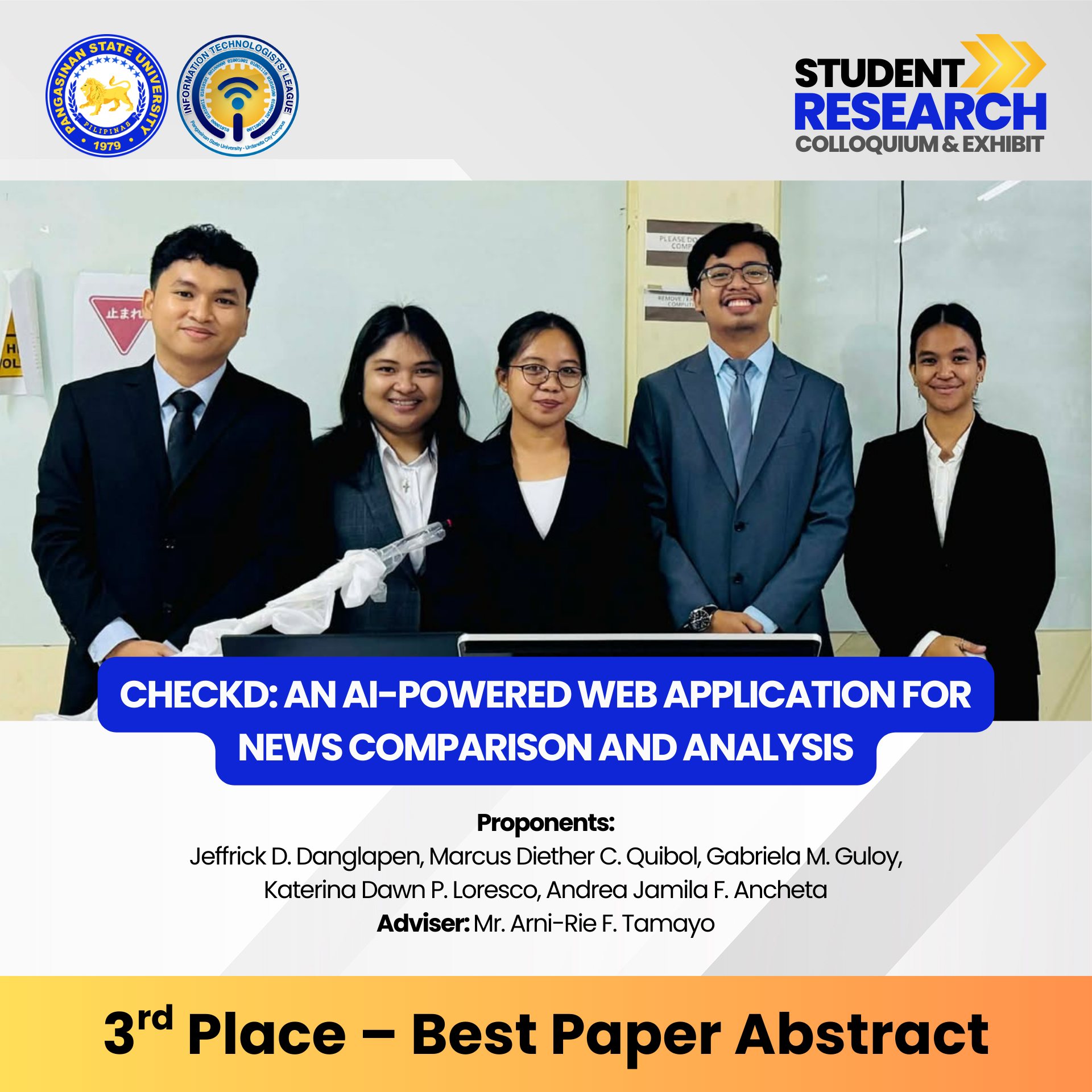 Congratulations to all winners, presenters, advisers, and organizers for making this event a success. You have raised the bar for innovation, research, and excellence in Information Technology!