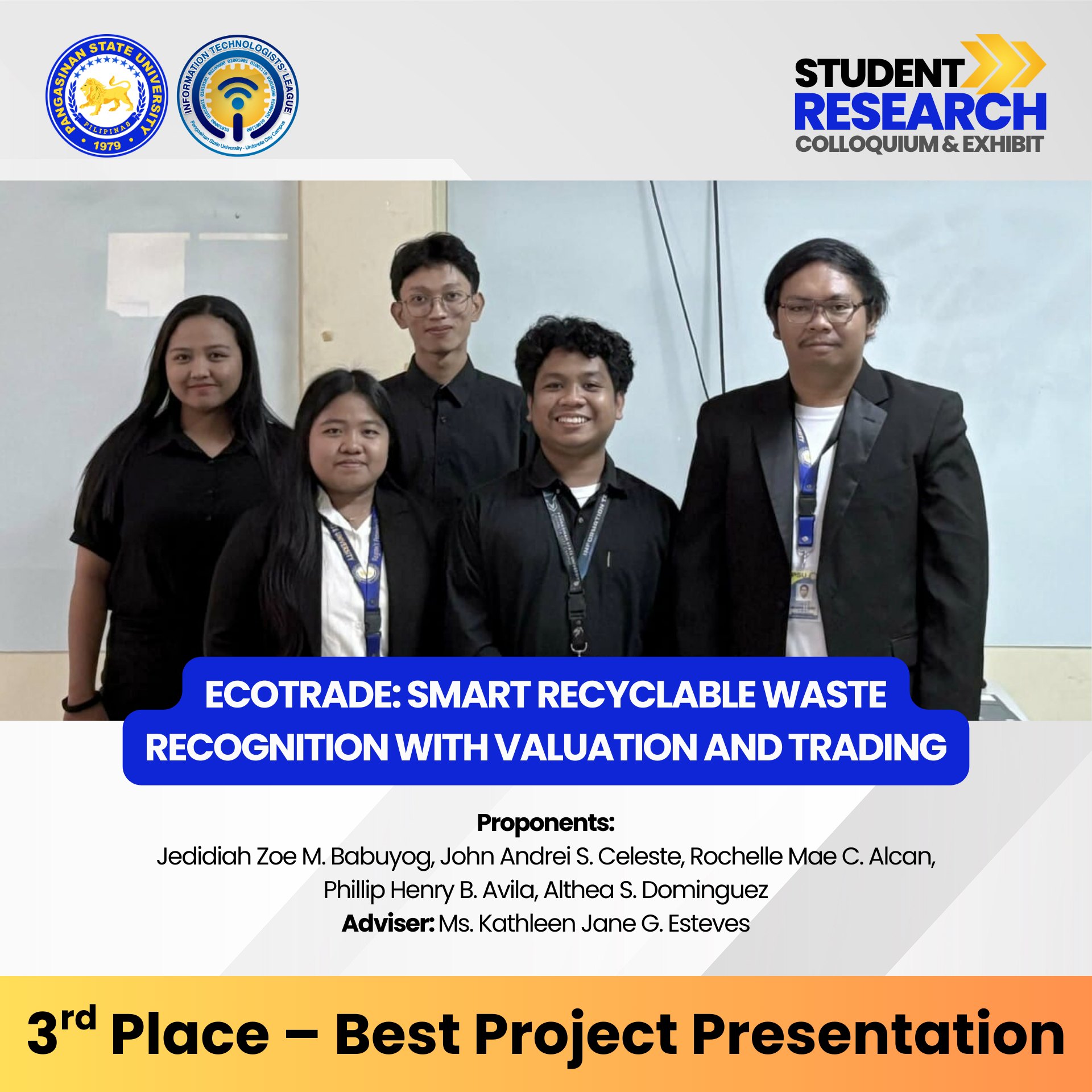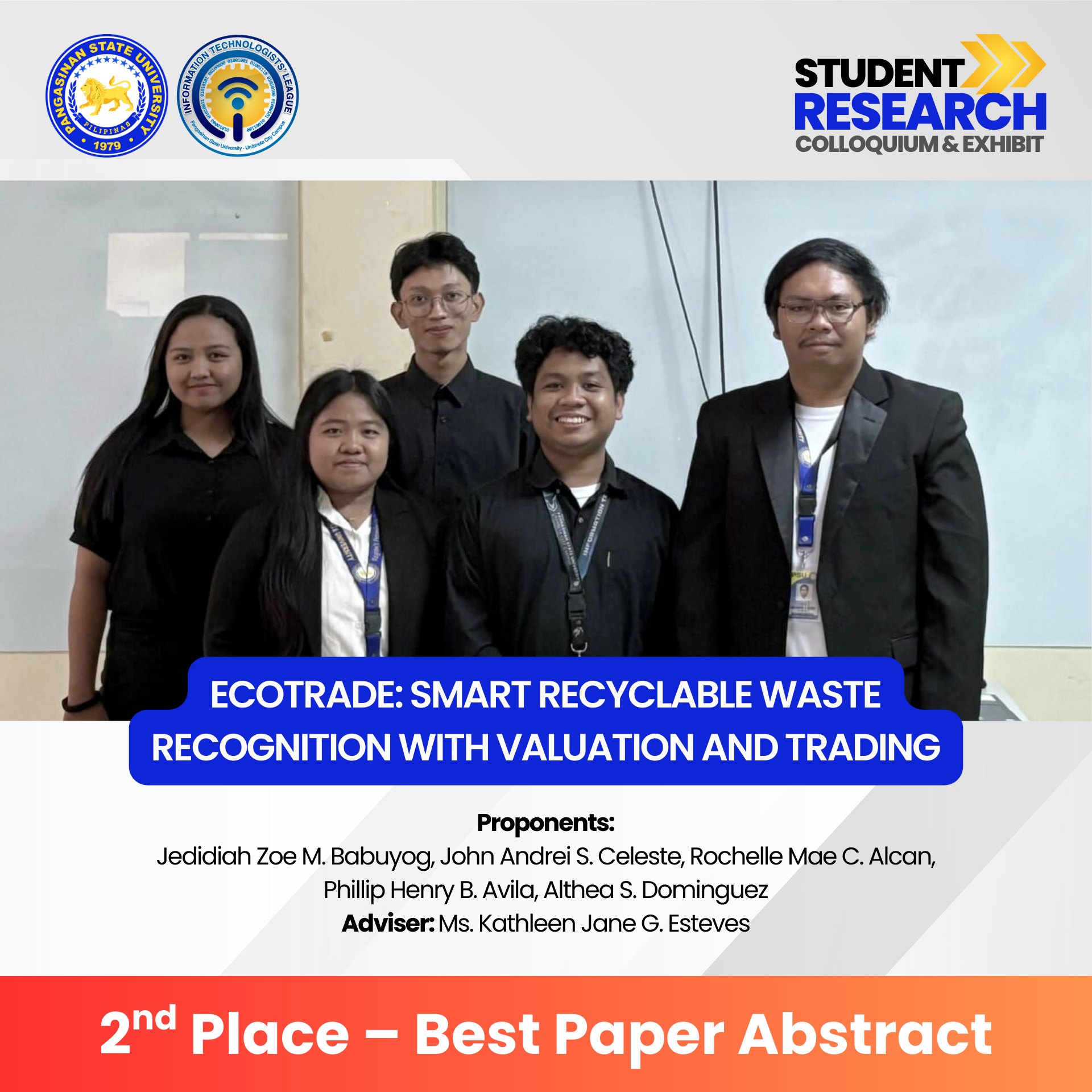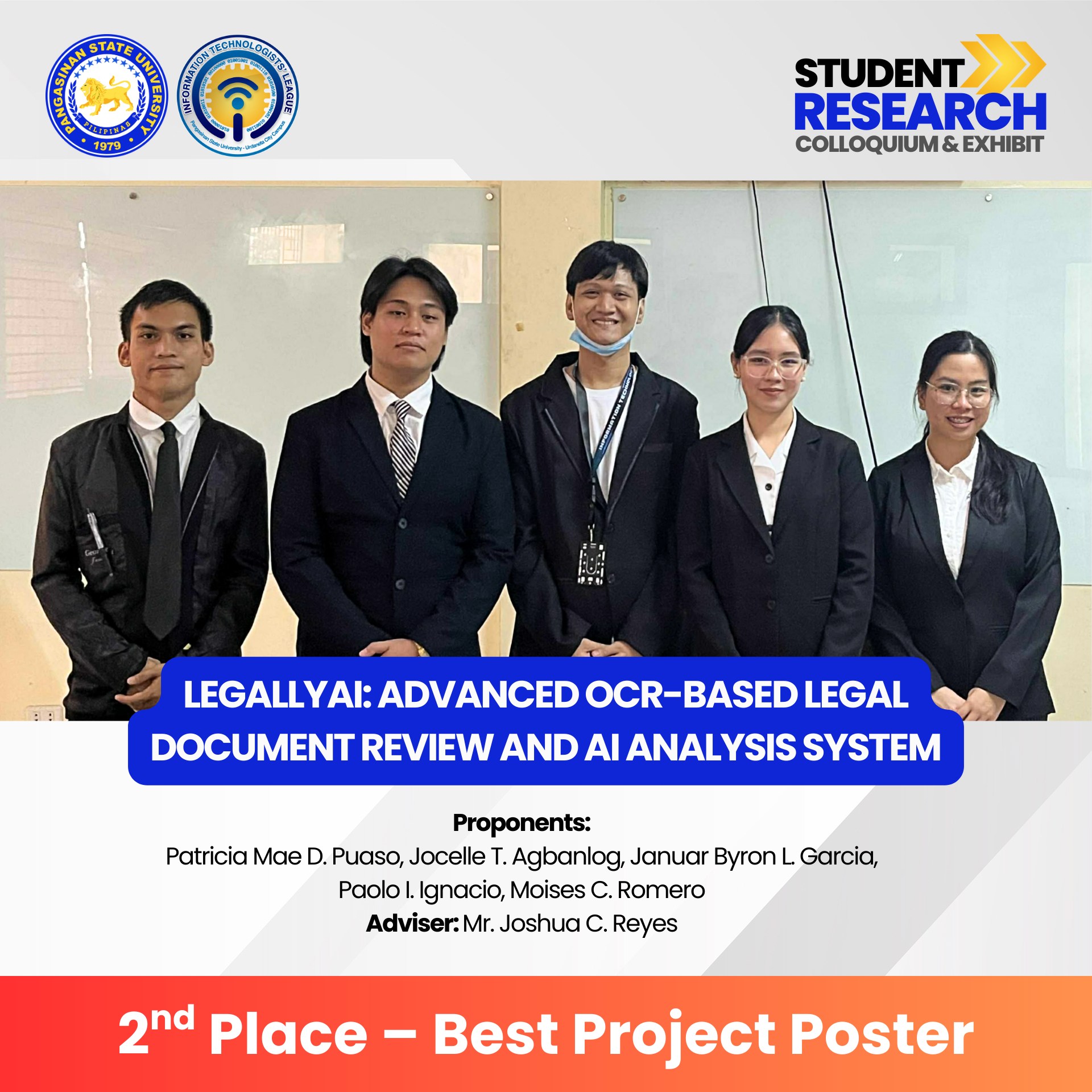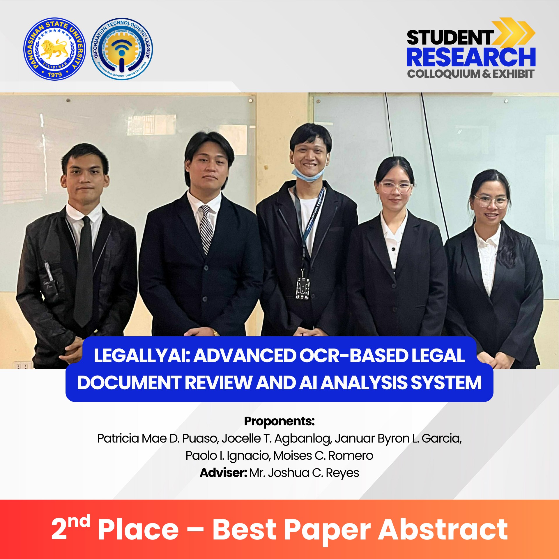Congratulations to all winners, presenters, advisers, and organizers for making this event a success. You have raised the bar for innovation, research, and excellence in Information Technology!